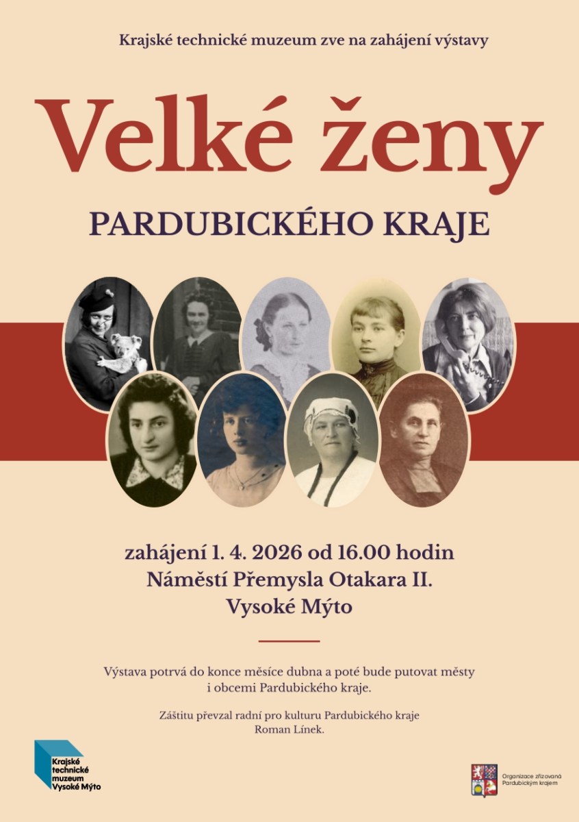 Od 1. dubna bude na náměstí Přemysla Otakara II. ve Vysokém Mýtě k vidění panelová výstava Velké ženy Pardubického kraje. Ta představí celkem jedenáct medailonků významných žen, které žily a působily na území kraje v 19. a 20. století. Najdeme mezi nimi fotografku, akademickou malířku, lékařku, pedagožku i zachránkyni životů.